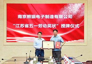 5月9日,江苏省机冶石化工会主任张旭海、国防电子工作部部长张杰到熊猫制造园,向“江苏省五一劳动奖状”获得单位熊猫股份所属熊猫制造授牌,并就技能竞赛人员的后续培养等方面进行专题调研。中电熊猫党委副书记、工会主席徐国忠,熊猫股份党委副书记、纪委书记、工会主席薛玉恒,熊猫股份副总经理、熊猫制造总经理、党委书记万磊等有关领导出席授牌仪式。 (仲毅摄文)